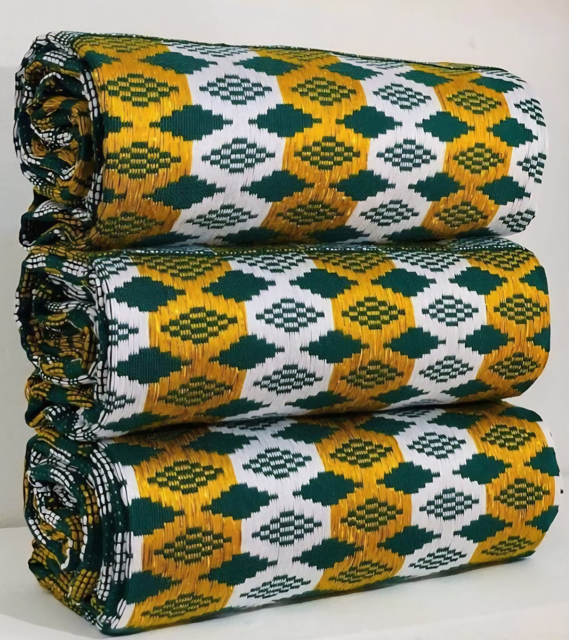 This fabric is the original Kente cloth and we cut no corners as many do to raise their profit by using a cheaper China thread that has flooded the market, where as we offer a guarantee for the real fabric and unlike many others, you get the design you see in the image and not something one may think is similar as we boost having the top weavers and designers in Ghana.