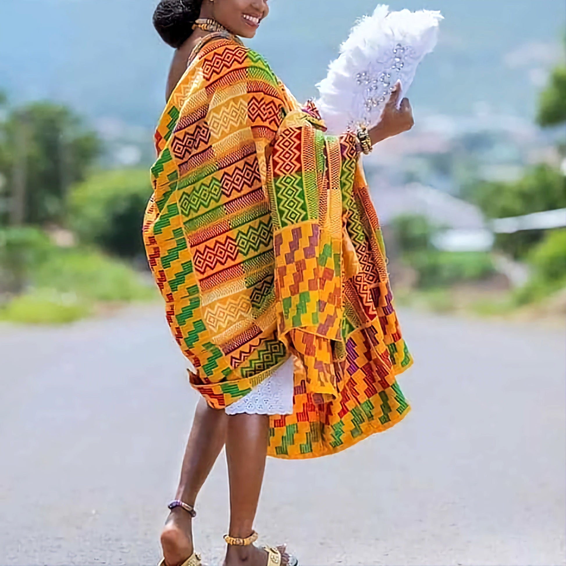 MG Authentic Kente is made with high end cotton and rayon blended together through an intricate weaving process done by hand in the Ashanti region of Kumasi, Ghana.