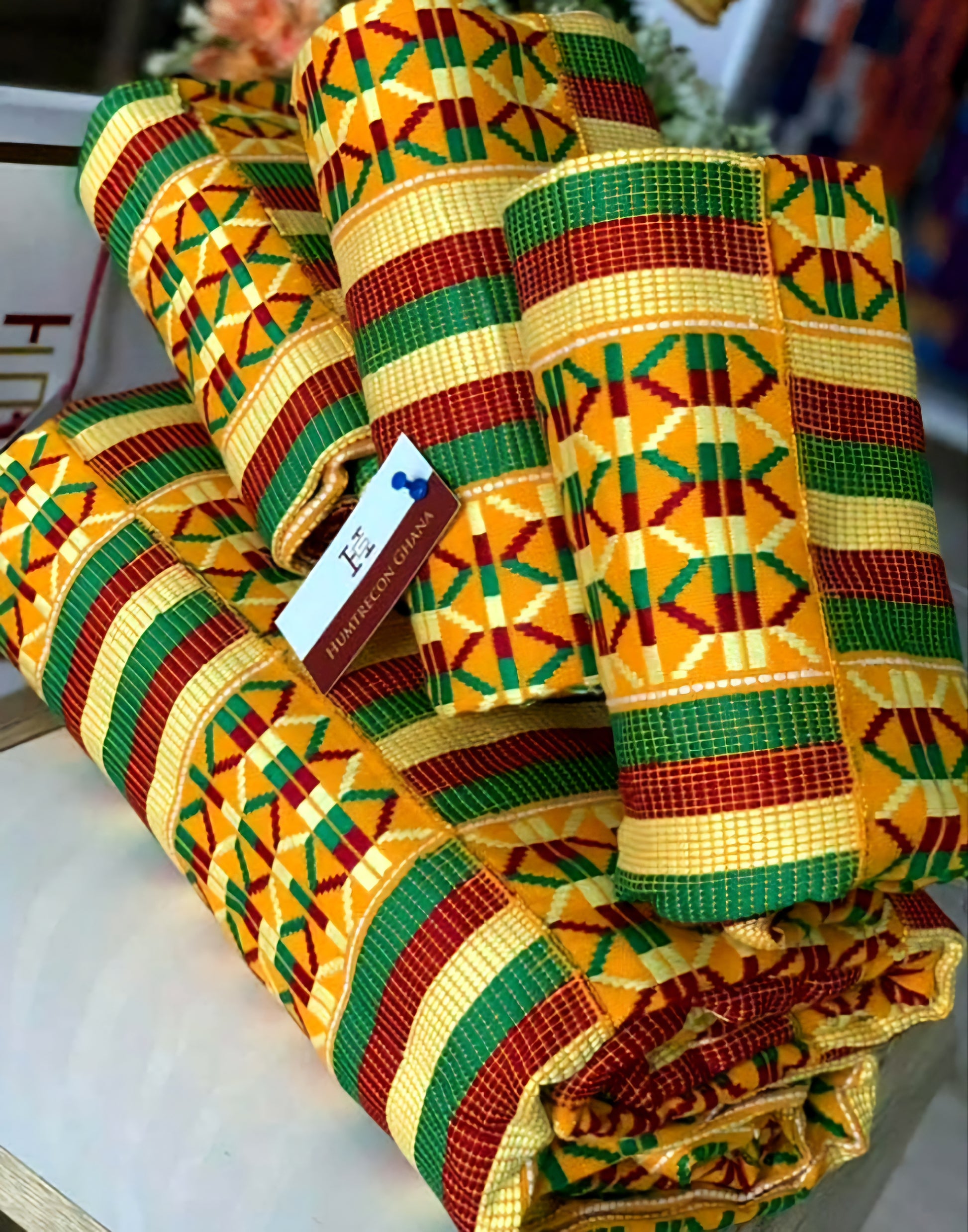 This fabric is the original Kente cloth and we cut no corners as many do to raise their profit by using a cheaper china thread that has flooded the market, where as we offer a guarantee for the real fabric and unlike many others, you get the design you see in the image and not something one may think is similar as we boost having the top weavers and designers in Ghana.