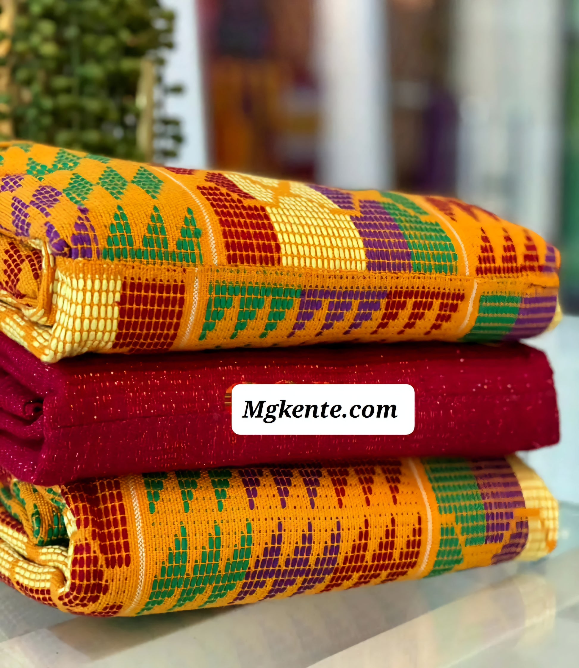 This fabric is the original Kente cloth and we cut no corners as many do to raise their profit by using a cheaper china thread that has flooded the market, where as we offer a guarantee for the real fabric and unlike many others, you get the design you see in the image and not something one may think is similar as we boost having the top weavers and designers in Ghana.