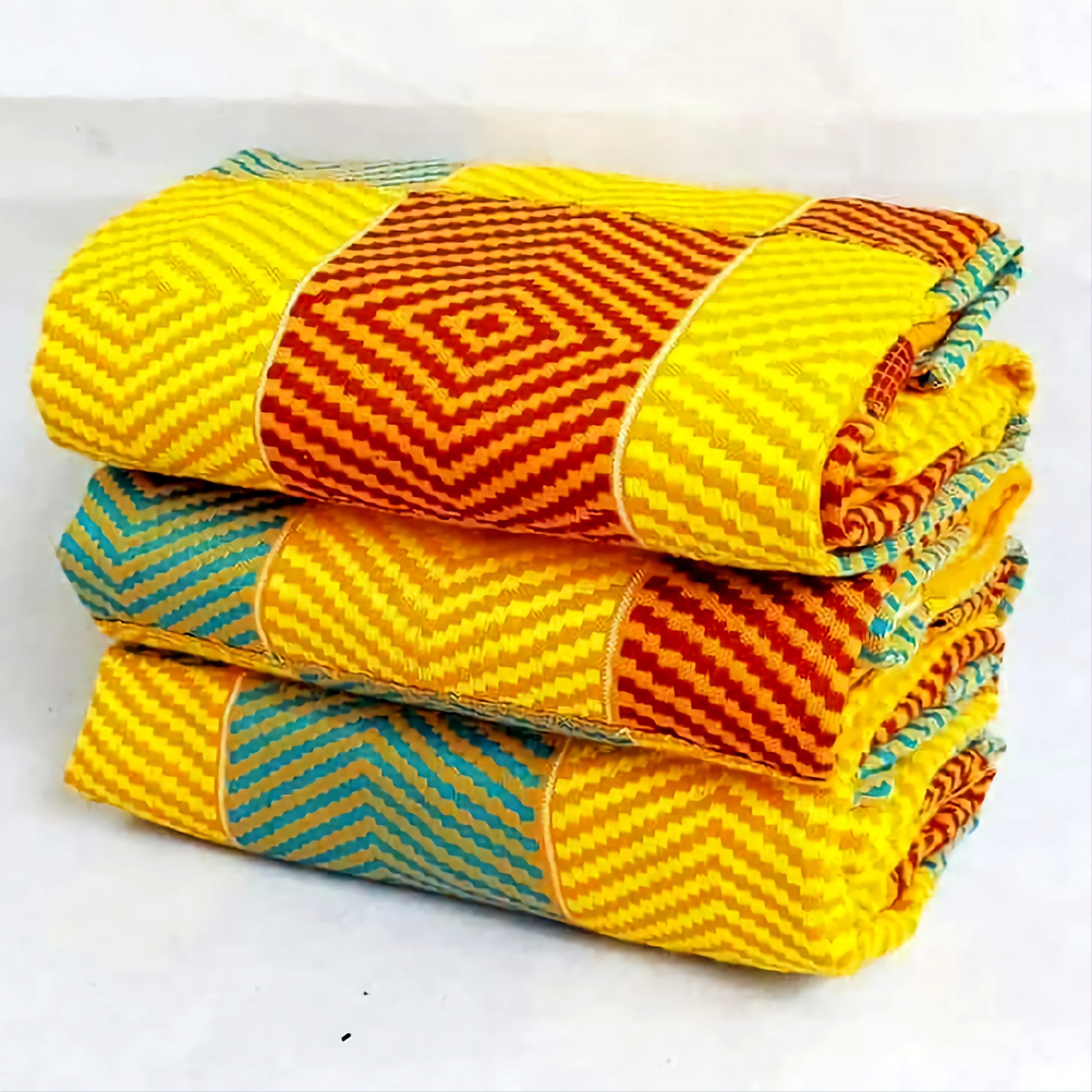 This fabric is the original Kente cloth and we cut no corners as many do to raise their profit by using a cheaper china thread that has flooded the market, where as we offer a guarantee for the real fabric and unlike many others, you get the design you see in the image and not something one may think is similar as we boost having the top weavers and designers in Ghana.