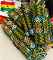 MG Authentic Kente is made with high end cotton and rayon blended together through an intricate weaving process done by hand in the Ashanti region of Kumasi, Ghana.