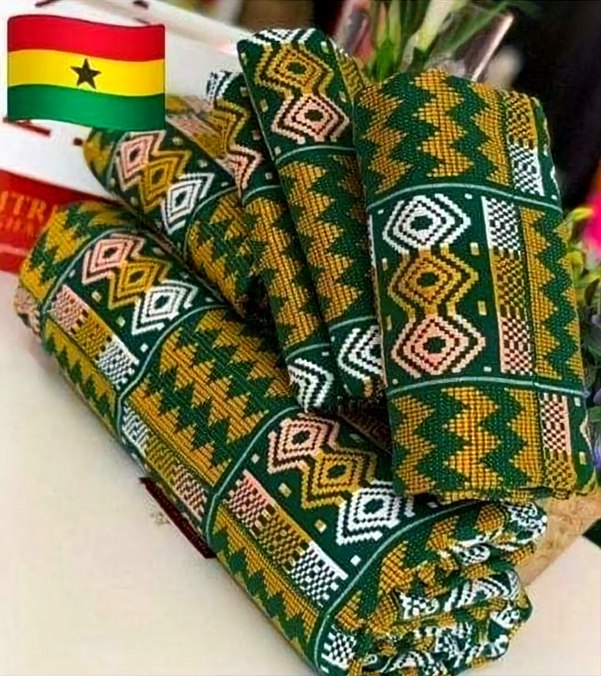 This fabric is the original Kente cloth and we cut no corners as many do to raise their profit by using a cheaper china thread that has flooded the market, where as we offer a guarantee for the real fabric and unlike many others, you get the design you see in the image and not something one may think is similar as we boost having the top weavers and designers in Ghana.