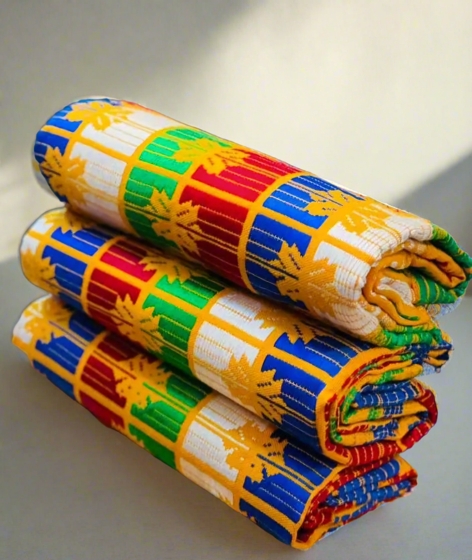 Kente comes from the word kenten, which means basket in the Asante dialect of Akan. Akans refer to kente as nwentoma, meaning woven cloth. It is an Akan royal and sacred cloth worn only in times of extreme importance and was the cloth of kings. Over time, the use of kente became more widespread.