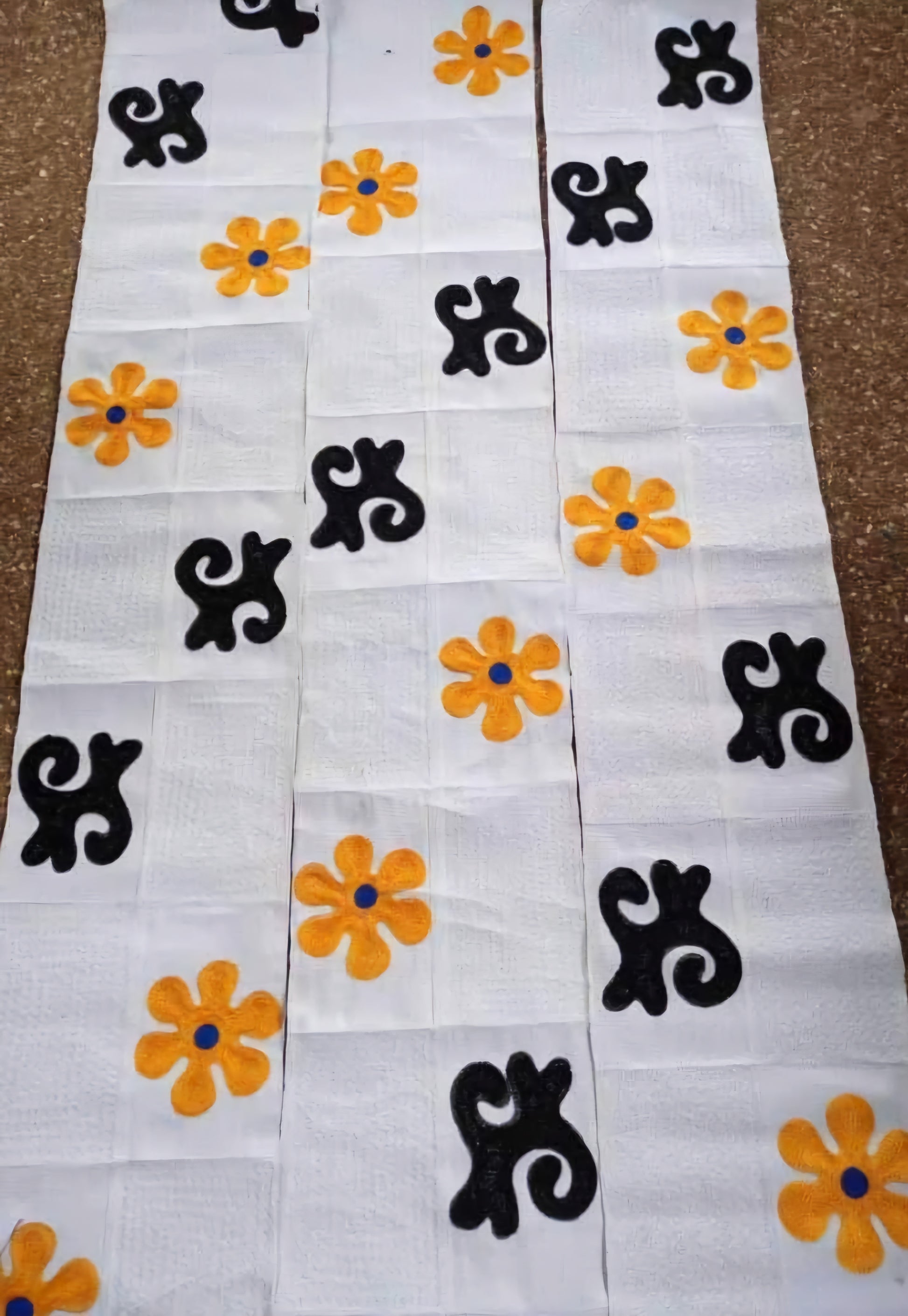 This fabric is the original Kente cloth and we cut no corners as many do to raise their profit by using a cheaper china thread that has flooded the market, where as we offer a guarantee for the real fabric and unlike many others, you get the design you see in the image and not something one may think is similar as we boost having the top weavers and designers in Ghana.