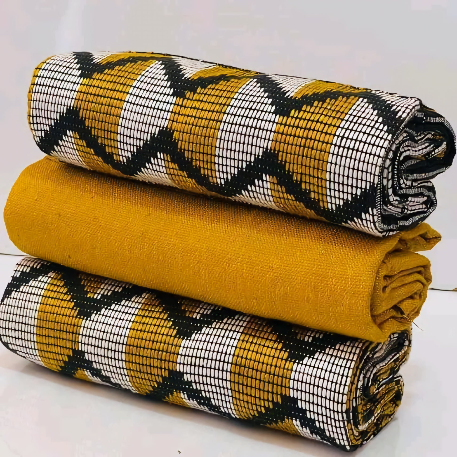 This fabric is the original Kente cloth and we cut no corners as many do to raise their profit by using a cheaper china thread that has flooded the market, where as we offer a guarantee for the real fabric and unlike many others, you get the design you see in the image and not something one may think is similar as we boost having the top weavers and designers in Ghana.