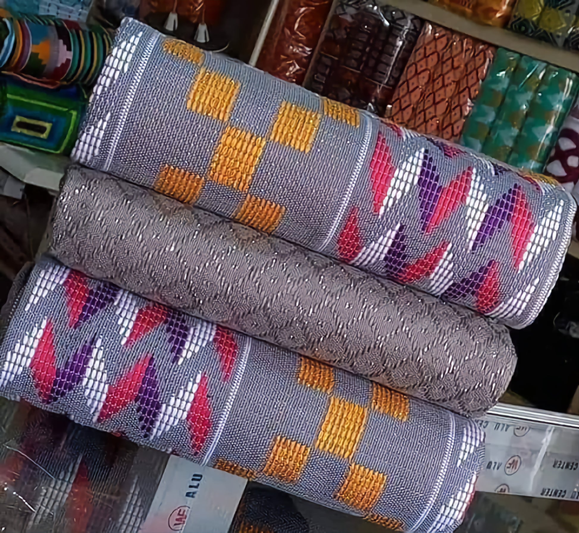 This fabric is the original Kente cloth and we cut no corners as many do to raise their profit by using a cheaper china thread that has flooded the market, where as we offer a guarantee for the real fabric and unlike many others, you get the design you see in the image and not something one may think is similar as we boost having the top weavers and designers in Ghana.