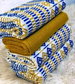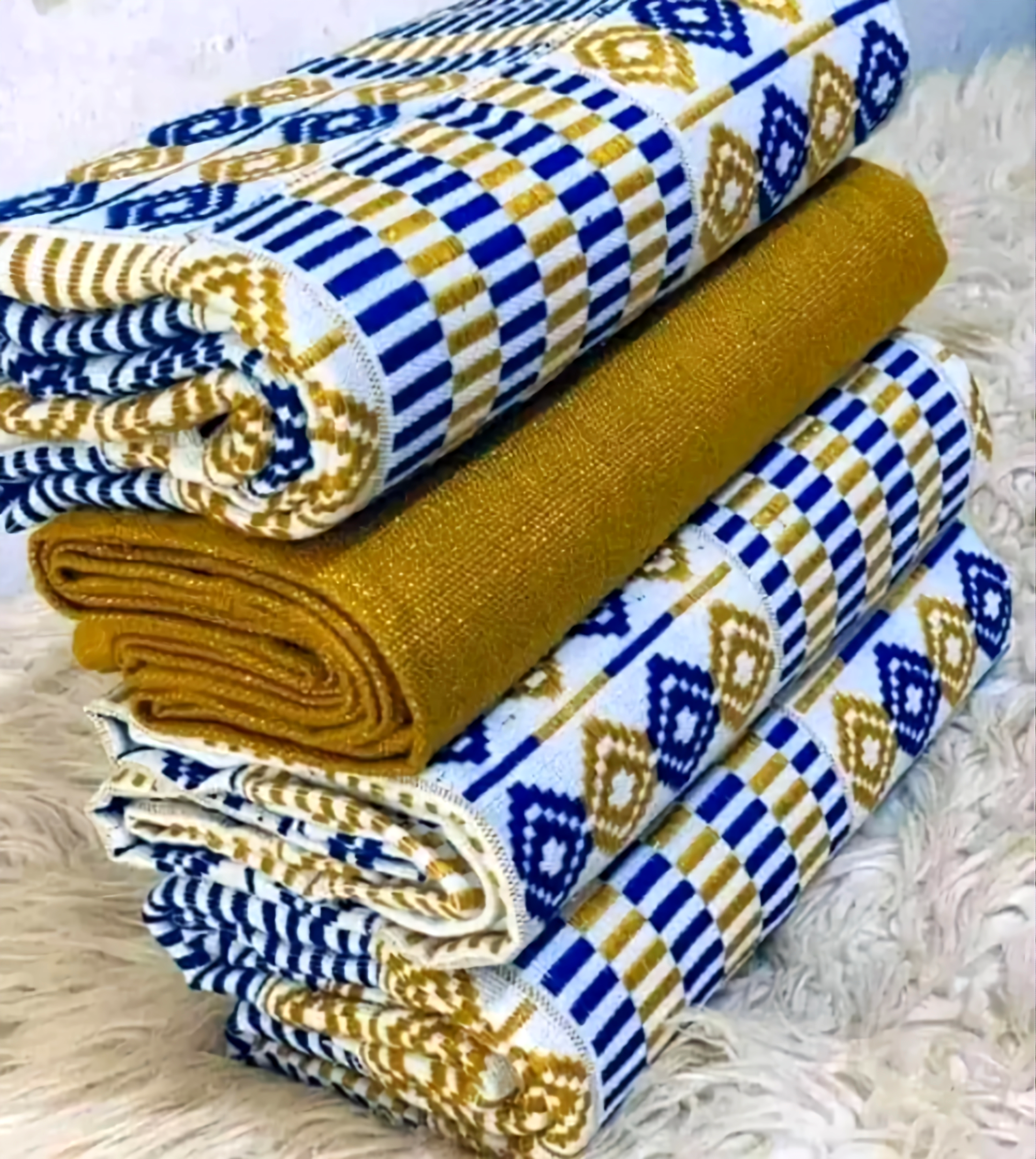 This fabric is the original Kente cloth and we cut no corners as many do to raise their profit by using a cheaper china thread that has flooded the market, where as we offer a guarantee for the real fabric and unlike many others, you get the design you see in the image and not something one may think is similar as we boost having the top weavers and designers in Ghana.