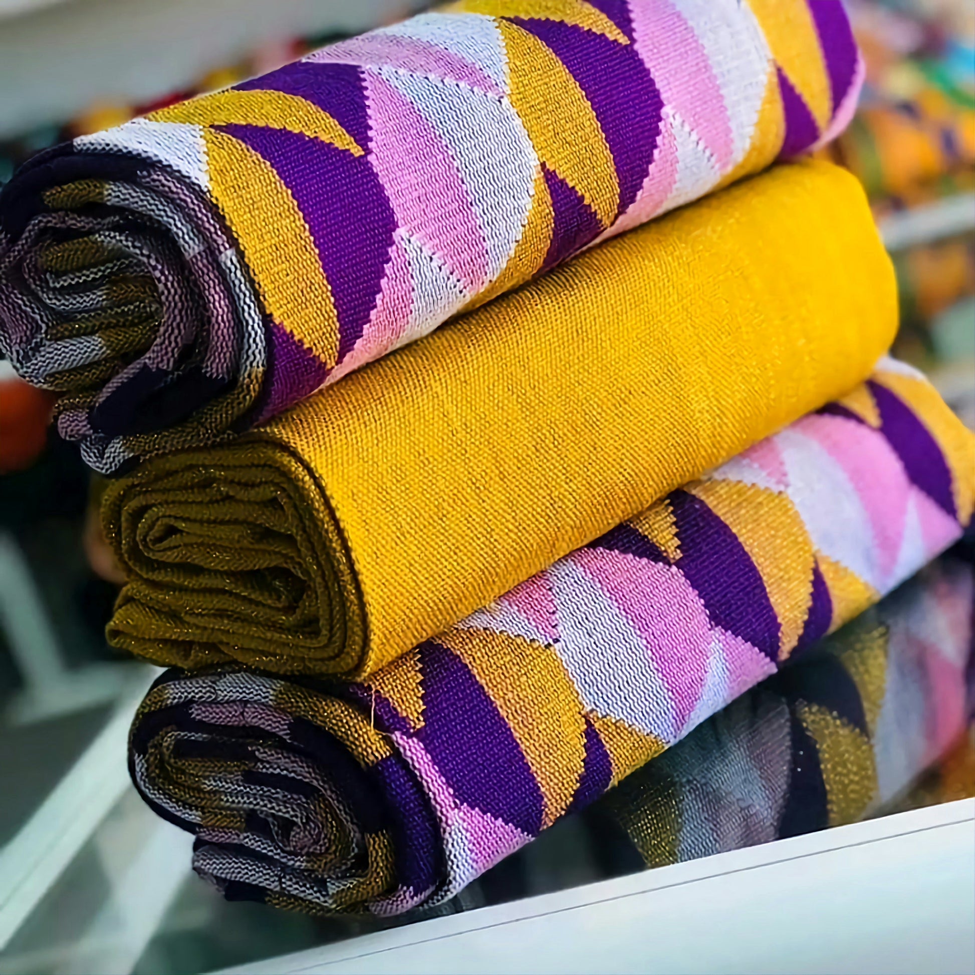 Kente comes from the word kenten, which means basket in the Asante dialect of Akan. Akans refer to kente as nwentoma, meaning woven cloth. It is an Akan royal and sacred cloth worn only in times of extreme importance and was the cloth of kings. Over time, the use of kente became more widespread.