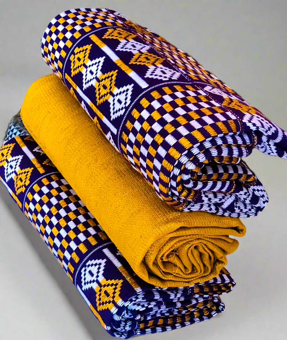 MG Authentic Hand Weaved Kente Cloth Mid Dark Blue A644