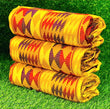 This fabric is the original Kente cloth and we cut no corners as many do to raise their profit by using a cheaper china thread that has flooded the market, where as we offer a guarantee for the real fabric and unlike many others, you get the design you see in the image and not something one may think is similar as we boost having the top weavers and designers in Ghana.