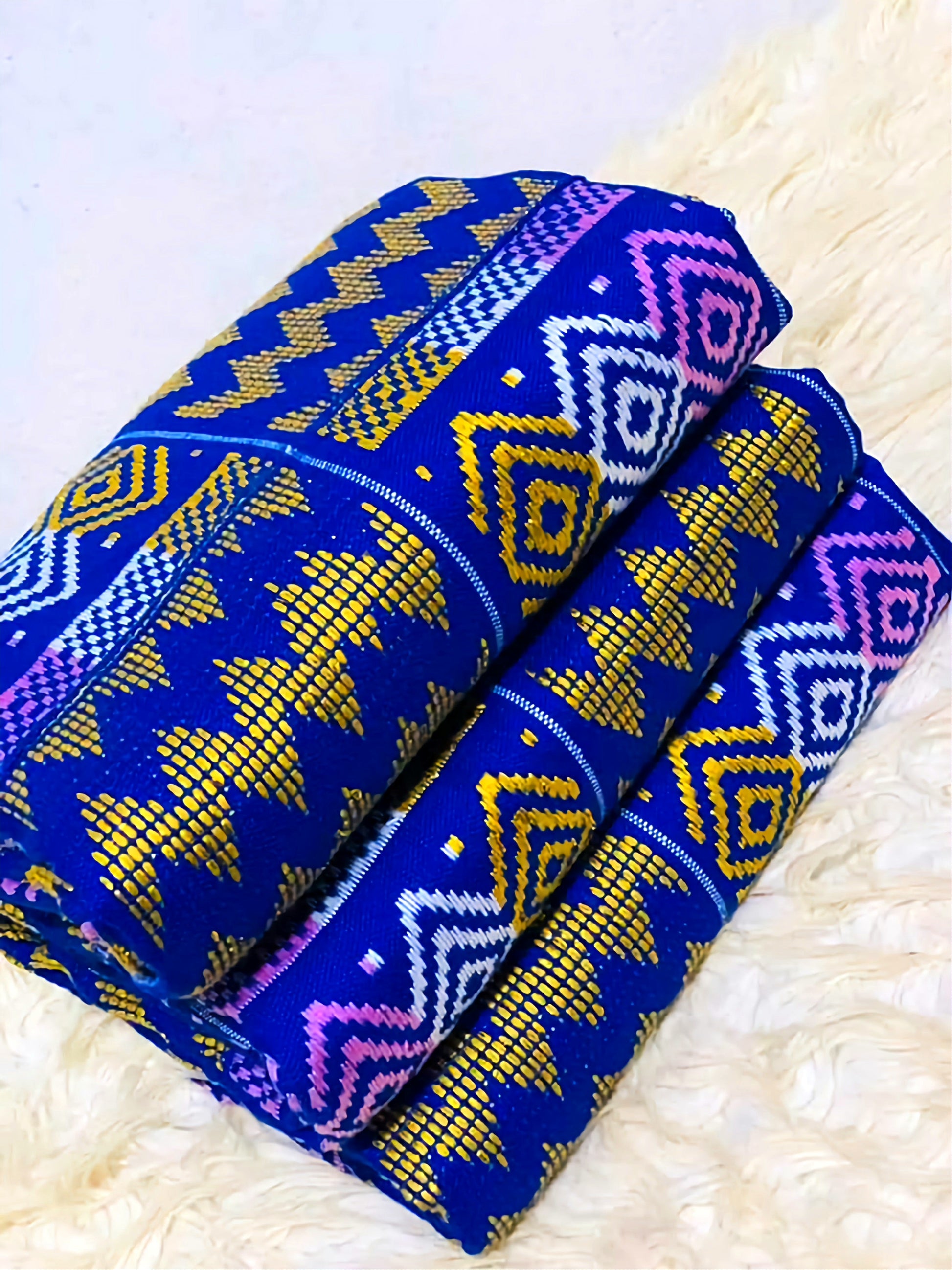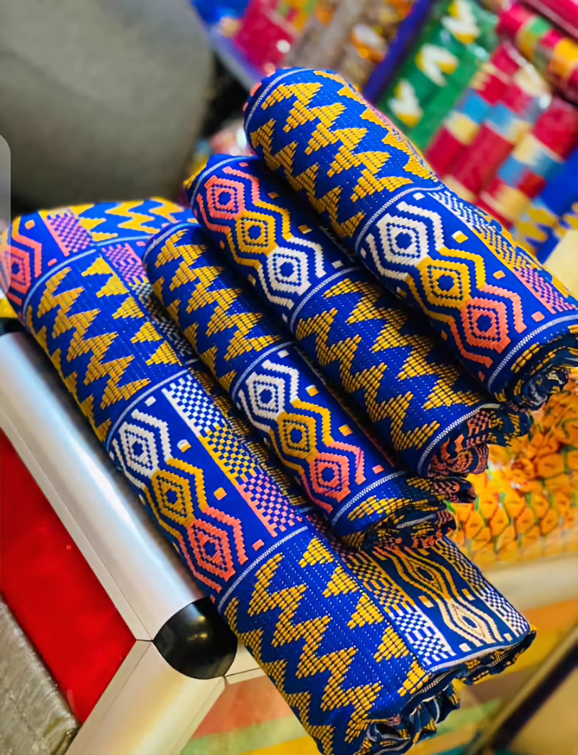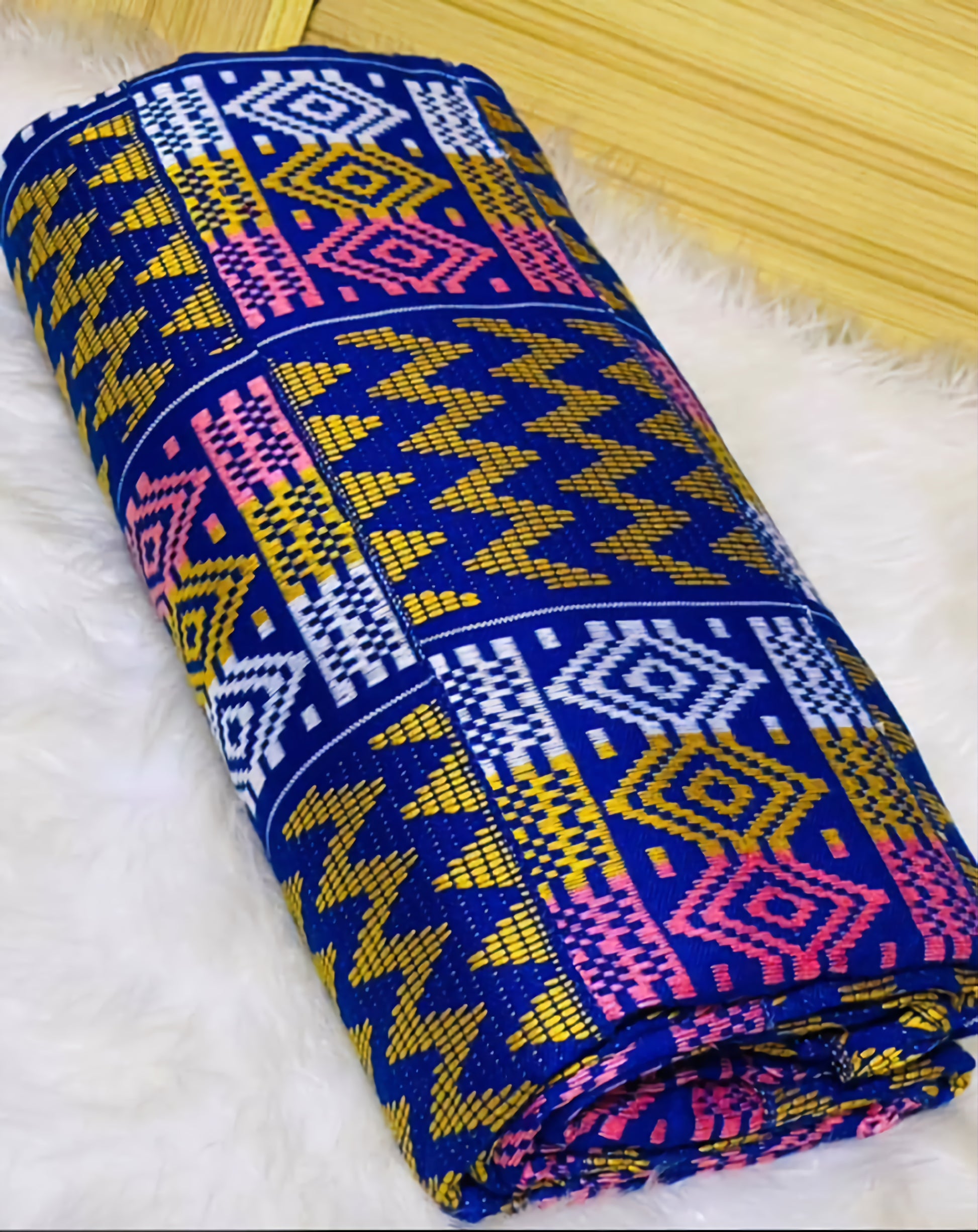 This fabric is the original Kente cloth and we cut no corners as many do to raise their profit by using a cheaper china thread that has flooded the market, where as we offer a guarantee for the real fabric and unlike many others, you get the design you see in the image and not something one may think is similar as we boost having the top weavers and designers in Ghana.