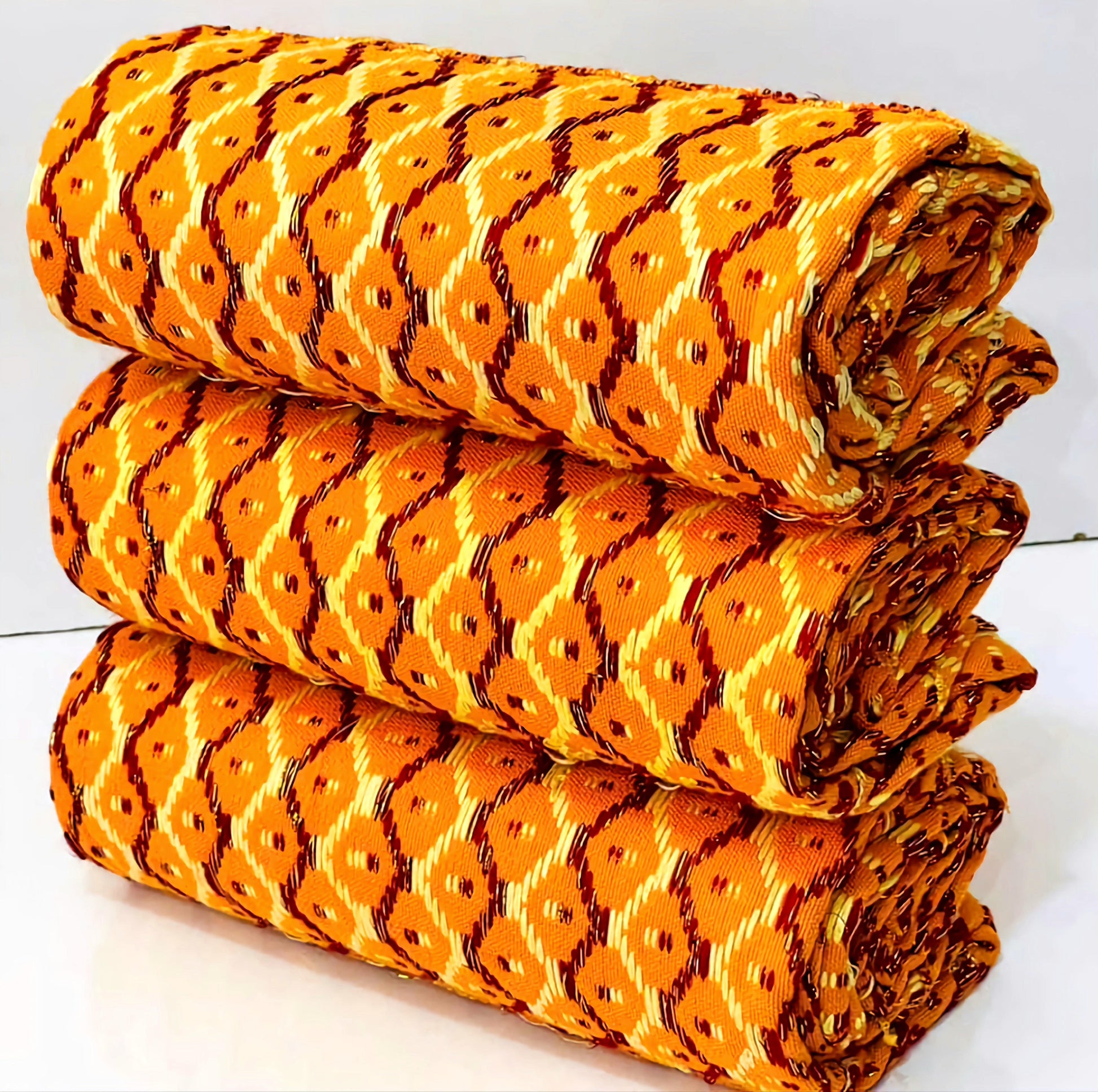 This fabric is the original Kente cloth and we cut no corners as many do to raise their profit by using a cheaper china thread that has flooded the market, where as we offer a guarantee for the real fabric and unlike many others, you get the design you see in the image and not something one may think is similar as we boost having the top weavers and designers in Ghana.