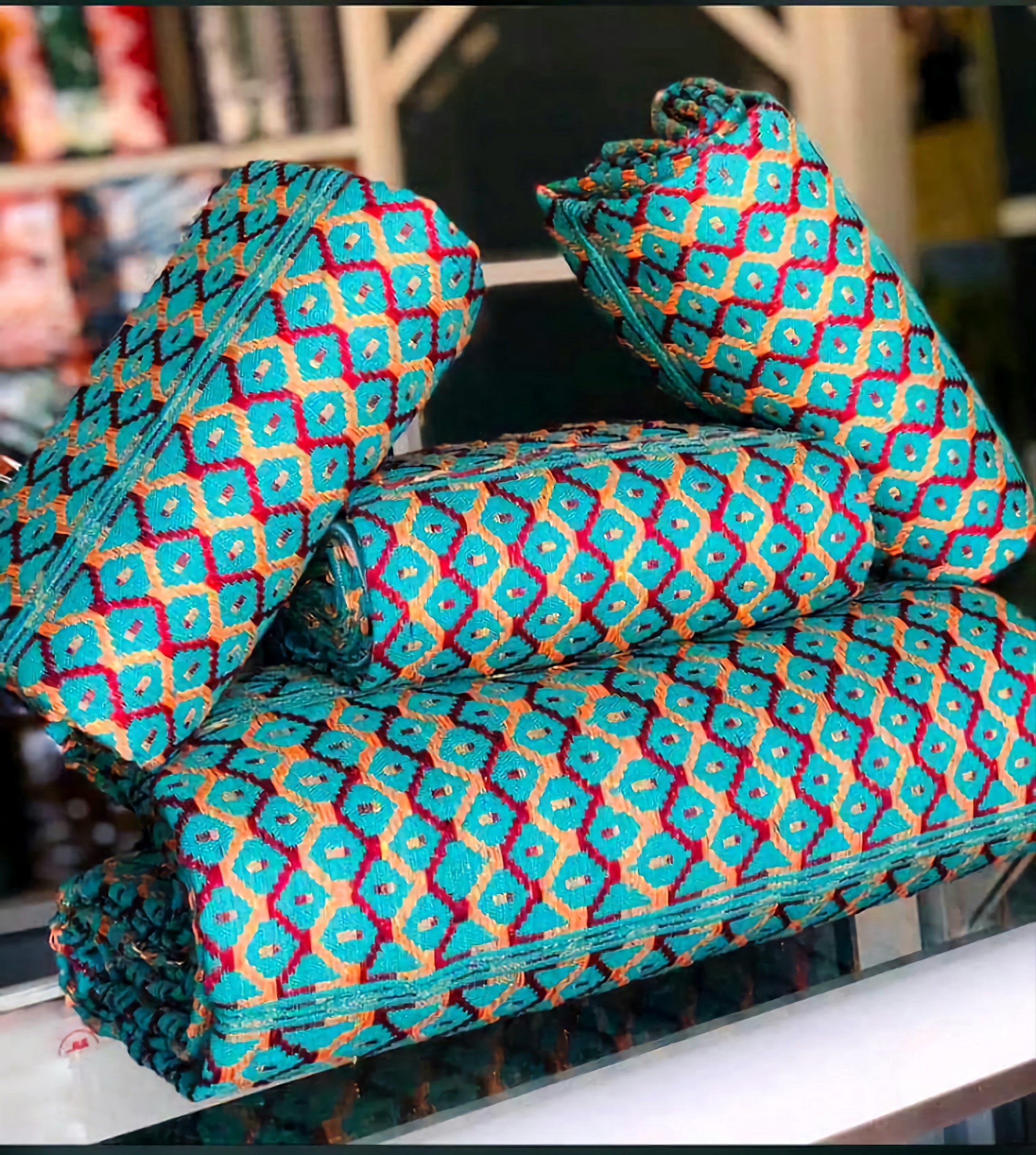 This fabric is the original Kente cloth and we cut no corners as many do to raise their profit by using a cheaper china thread that has flooded the market, where as we offer a guarantee for the real fabric and unlike many others, you get the design you see in the image and not something one may think is similar as we boost having the top weavers and designers in Ghana.