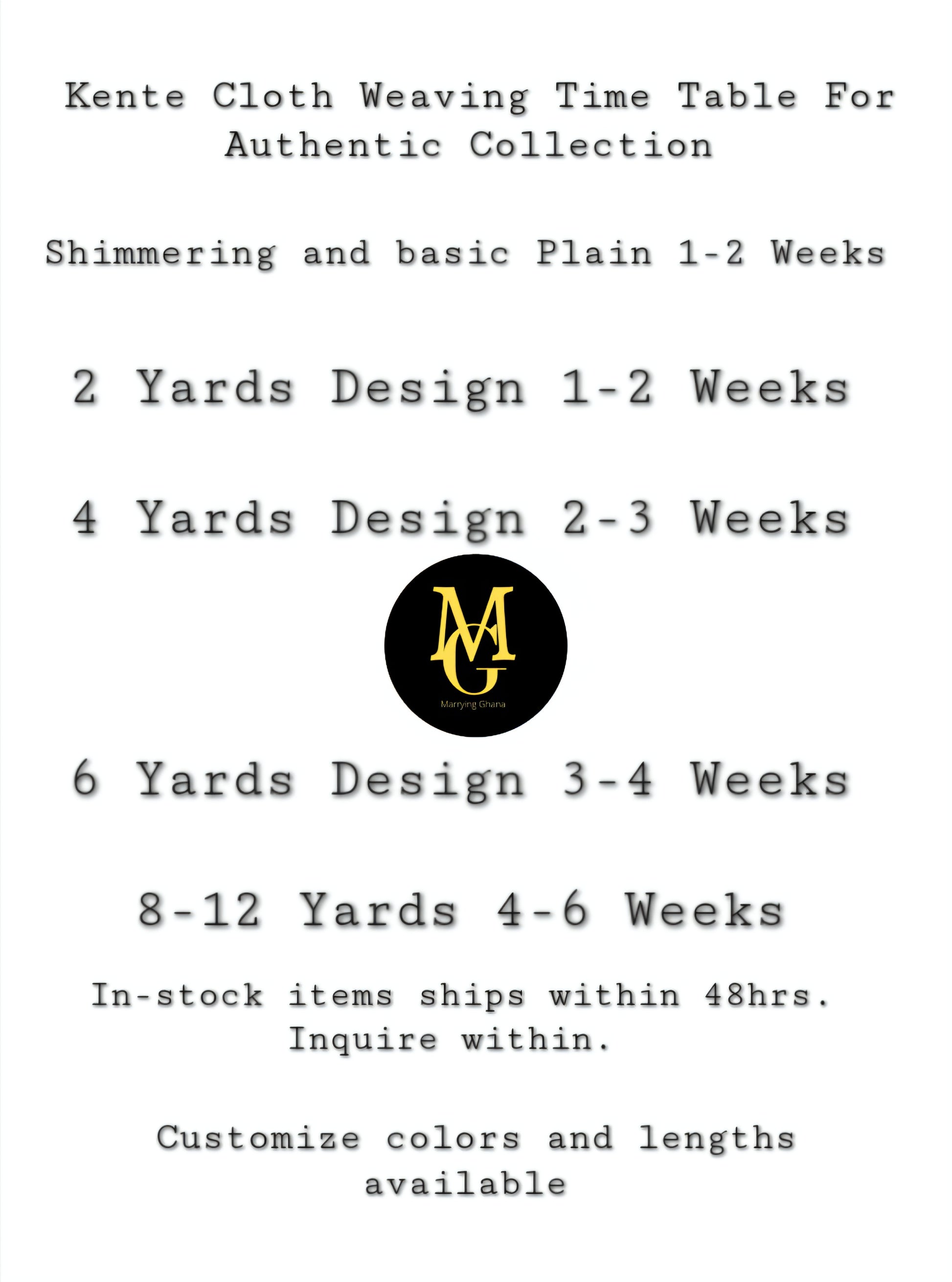 This fabric is the original Kente cloth and we cut no corners as many do to raise their profit by using a cheaper china thread that has flooded the market, where as we offer a guarantee for the real fabric and unlike many others, you get the design you see in the image and not something one may think is similar as we boost having the top weavers and designers in Ghana.