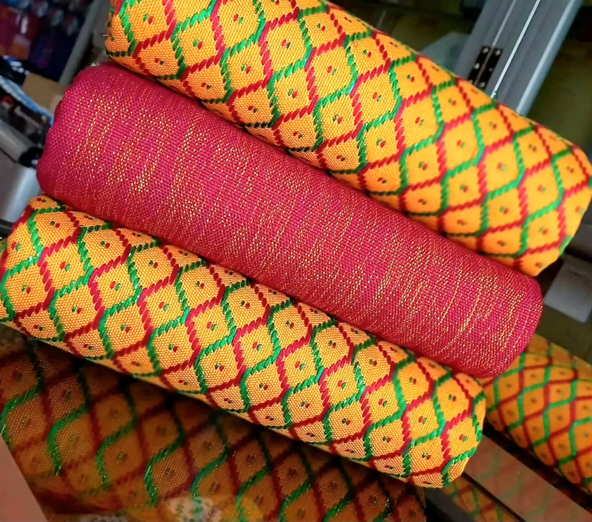 This fabric is the original Kente cloth and we cut no corners as many do to raise their profit by using a cheaper china thread that has flooded the market, where as we offer a guarantee for the real fabric and unlike many others, you get the design you see in the image and not something one may think is similar as we boost having the top weavers and designers in Ghana.
