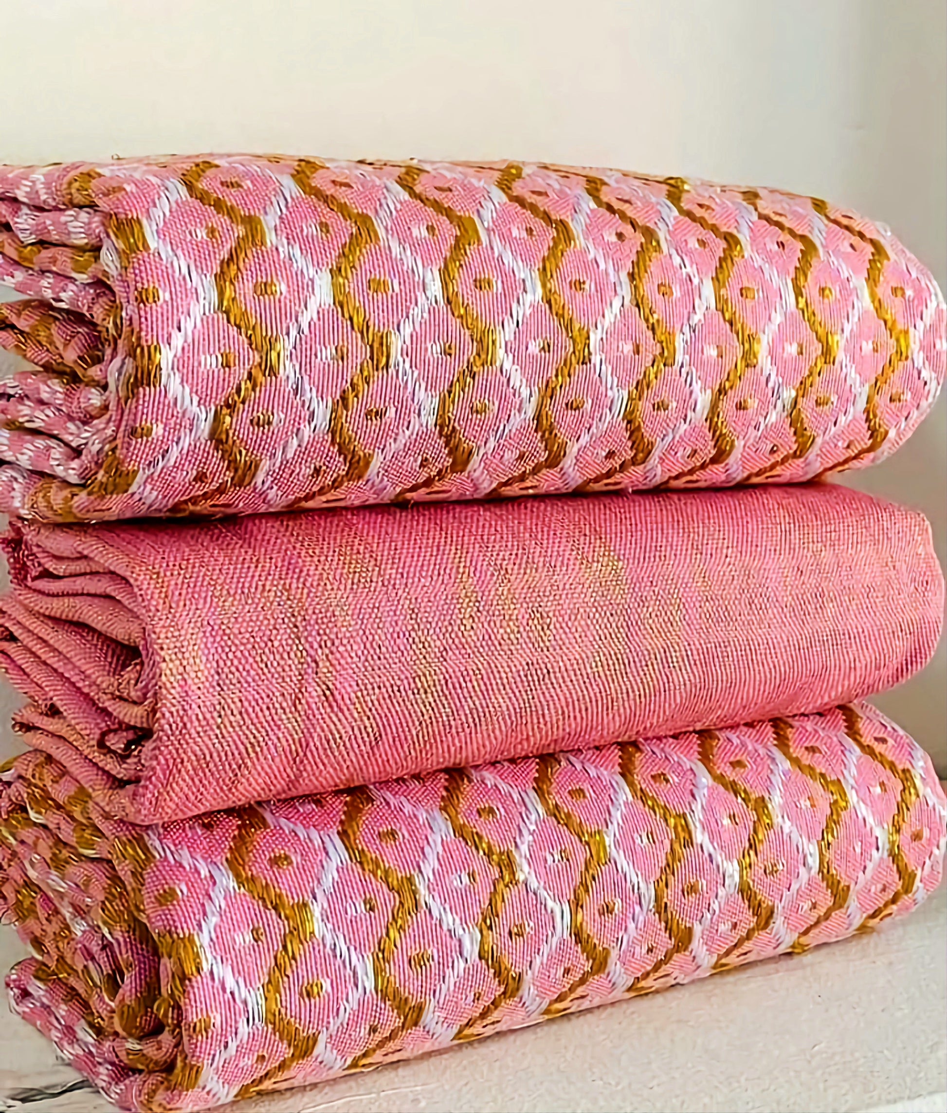 This fabric is the original Kente cloth and we cut no corners as many do to raise their profit by using a cheaper china thread that has flooded the market, where as we offer a guarantee for the real fabric and unlike many others, you get the design you see in the image and not something one may think is similar as we boost having the top weavers and designers in Ghana.