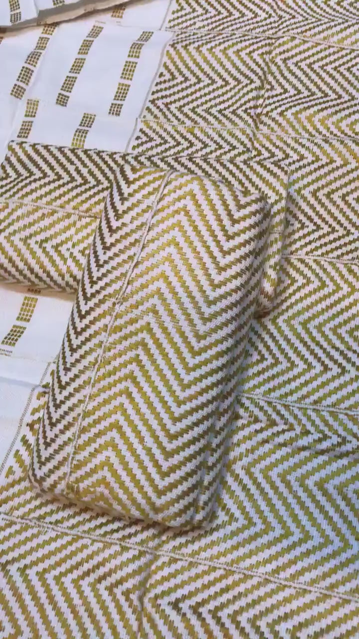 This fabric is the original Kente cloth and we cut no corners as many do to raise their profit by using a cheaper china thread that has flooded the market, where as we offer a guarantee for the real fabric and unlike many others, you get the design you see in the image and not something one may think is similar as we boost having the top weavers and designers in Ghana.