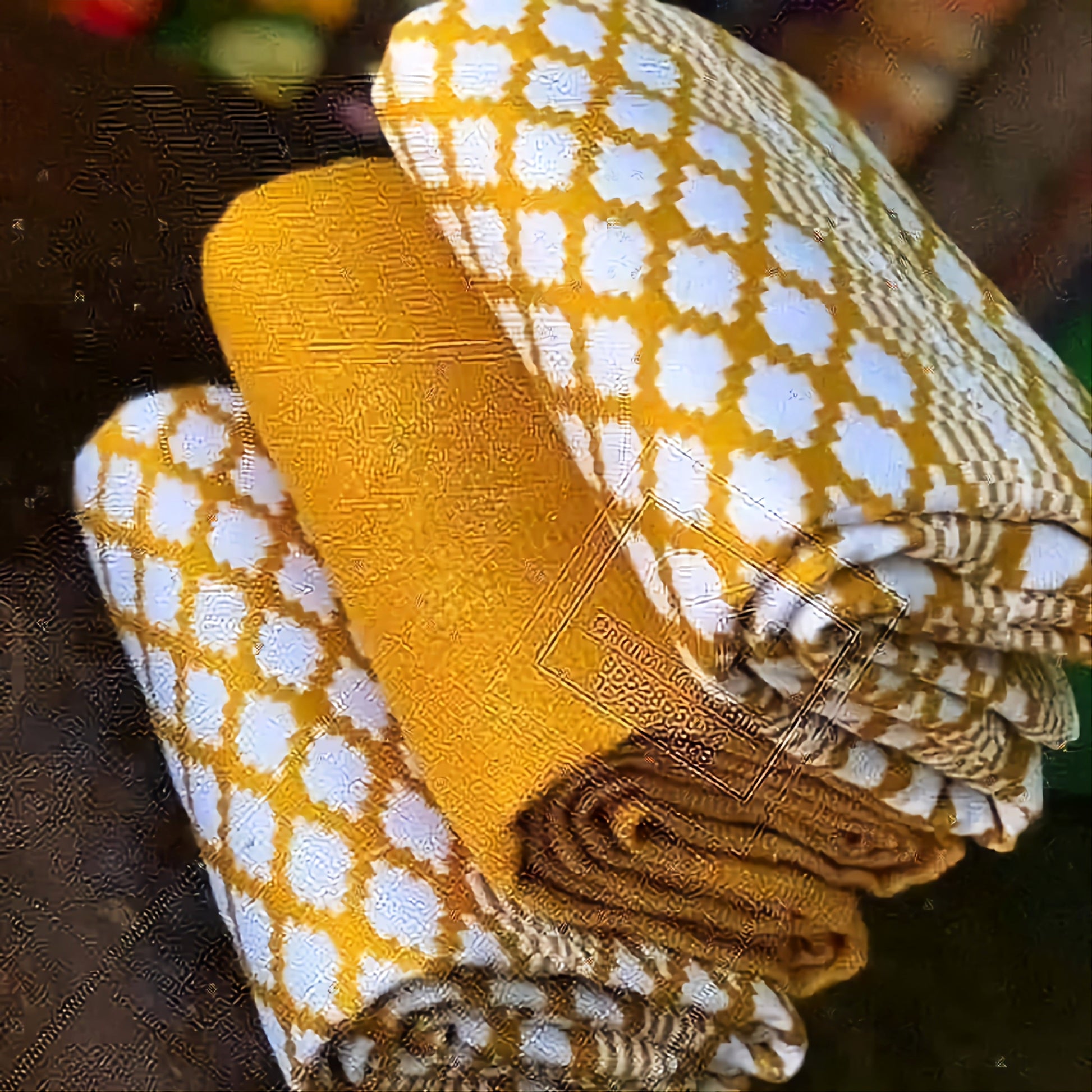 This fabric is the original Kente cloth and we cut no corners as many do to raise their profit by using a cheaper china thread that has flooded the market, where as we offer a guarantee for the real fabric and unlike many others, you get the design you see in the image and not something one may think is similar as we boost having the top weavers and designers in Ghana.