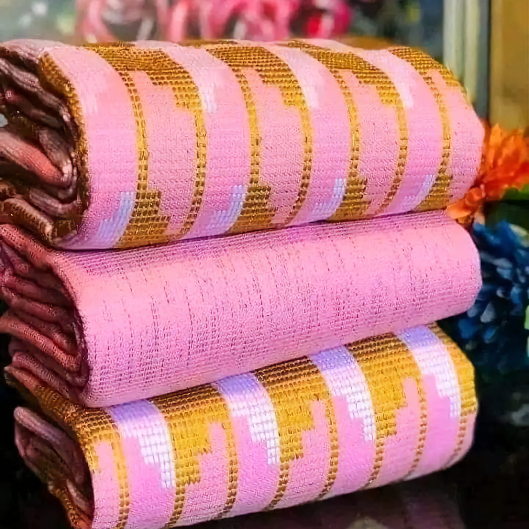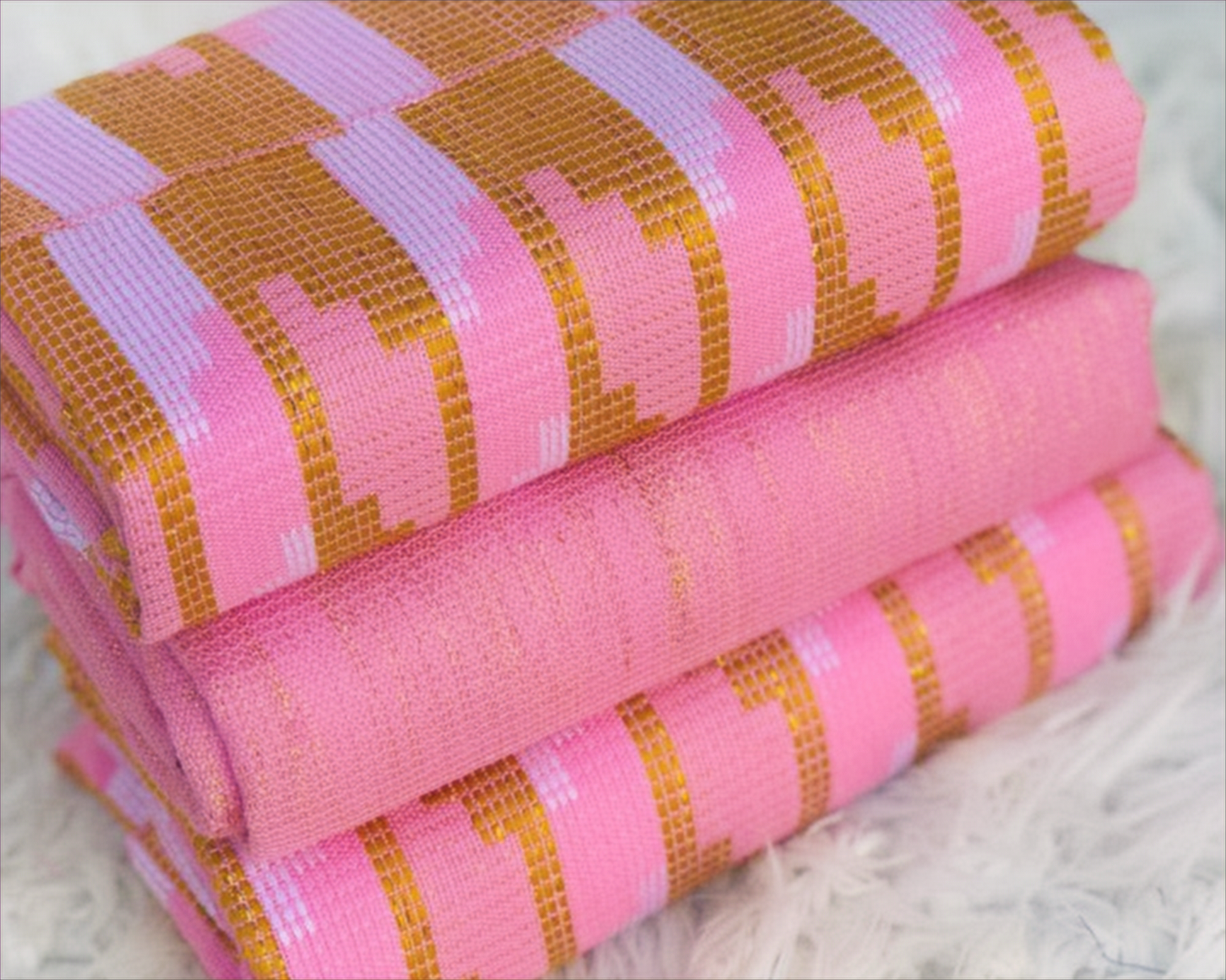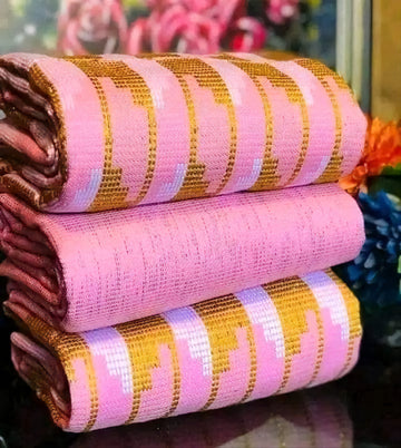 This fabric is the original Kente cloth and we cut no corners as many do to raise their profit by using a cheaper china thread that has flooded the market, where as we offer a guarantee for the real fabric and unlike many others, you get the design you see in the image and not something one may think is similar as we boost having the top weavers and designers in Ghana.