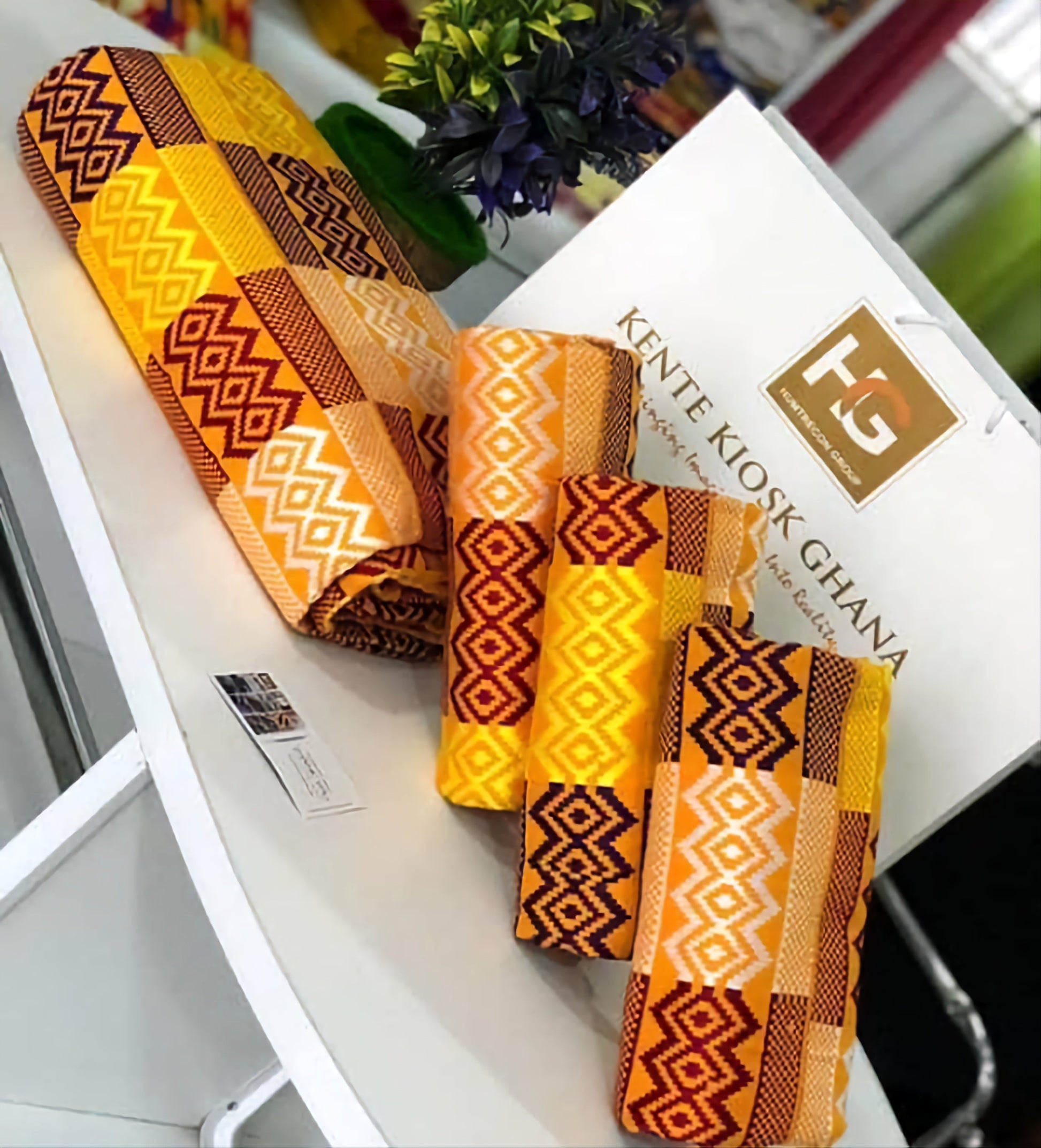 This fabric is the original Kente cloth and we cut no corners as many do to raise their profit by using a cheaper china thread that has flooded the market, where as we offer a guarantee for the real fabric and unlike many others, you get the design you see in the image and not something one may think is similar as we boost having the top weavers and designers in Ghana.