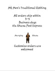 MG Clothing are branded and embroidered with the MGC(Marrying Ghana Clothing) initials for proof of Authenticity from our fashion line.