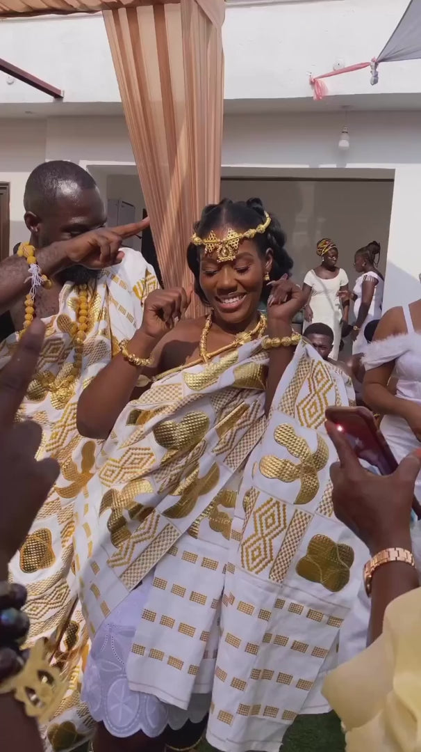 MG Authentic Hand Weaved Kente Cloth with Cow Leather Embroidery A92