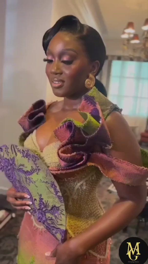This Prestige Dress collection comes with all accessories shown and are gift wrapped with an authentic Marrying Ghana shopping bag.